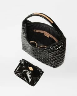 Black Lacquer Large Metro Shoulder Bag