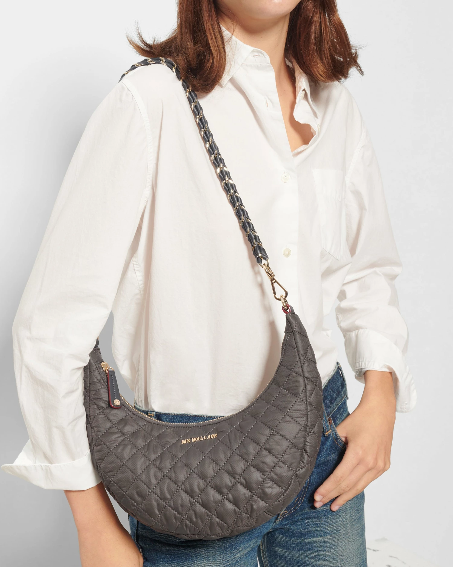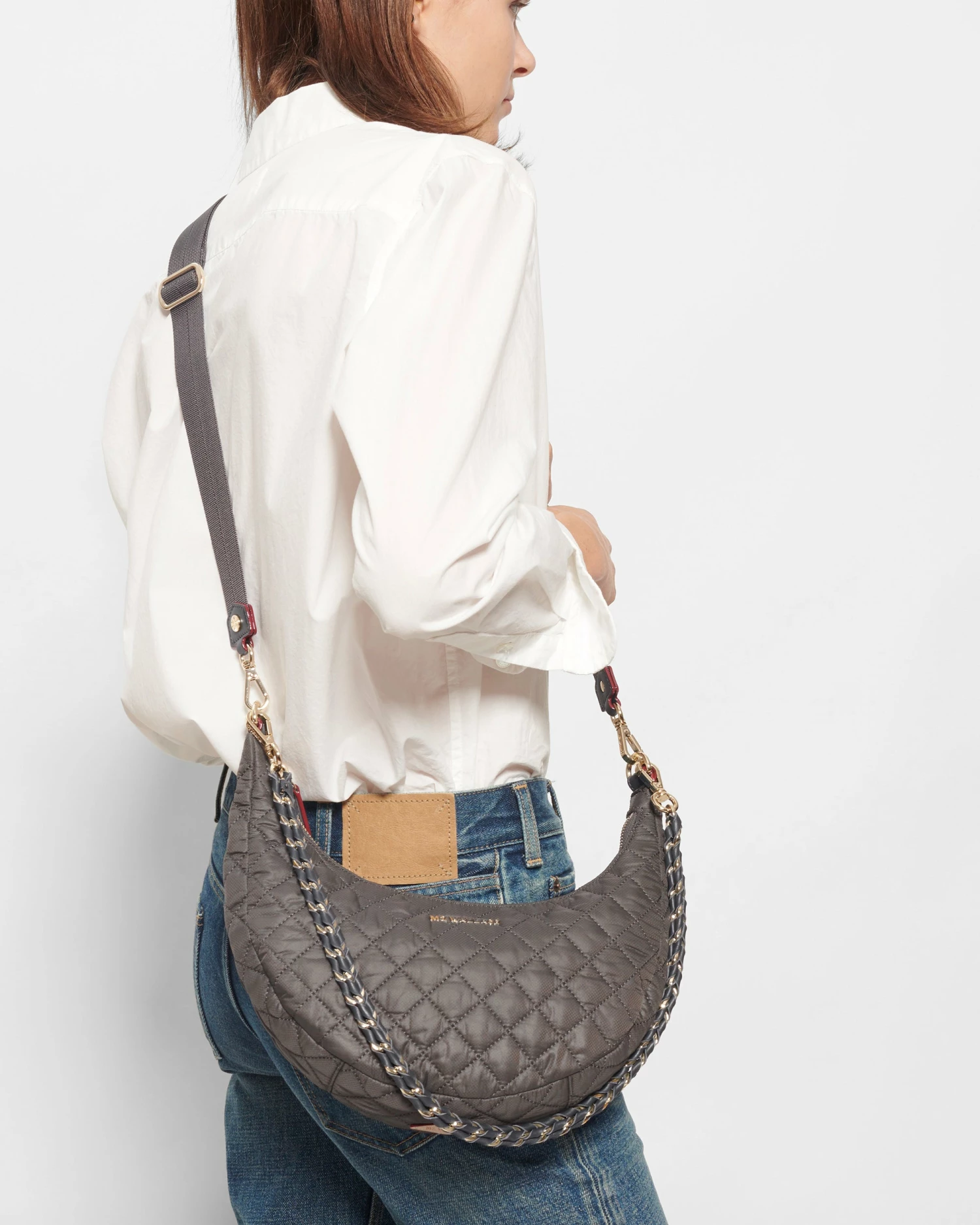 Moon eyed. The REC Oxford Nylon Crosby Luna has a zip top closure and three detachable straps to customize your look.